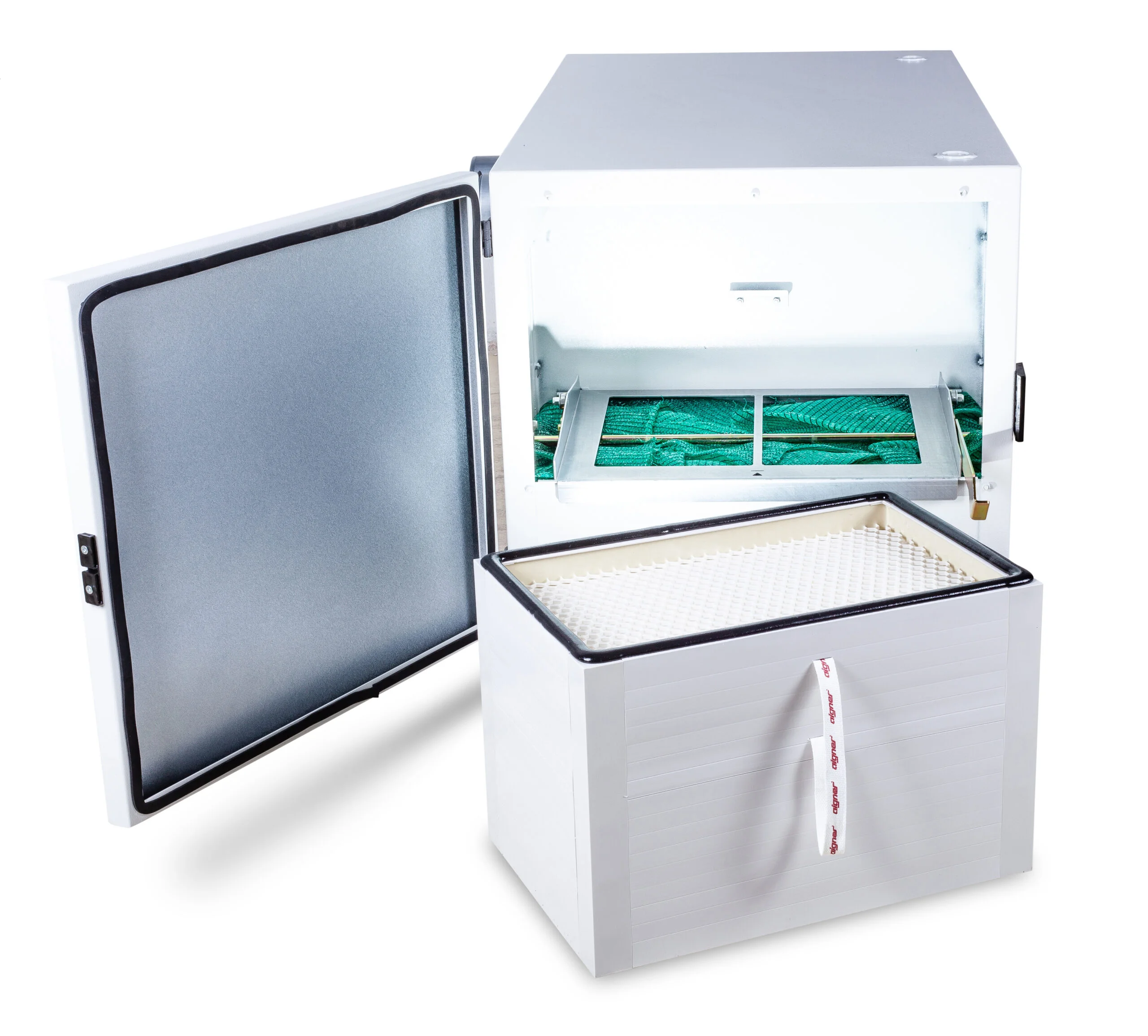 The Trotec Atmos Cube is a state-of-the-art exhaust system, perfectly suited for smaller laser machines in low dust level applications. This compact unit not only streamlines your workspace but also ensures a safe, clean operational environment. It features advanced automatic power control for optimal dust and gas extraction, and a user-friendly digital control panel. The Atmos Cube’s innovative design facilitates easy filter replacement, enhancing efficiency and reducing maintenance costs. Its energy-saving mode and economic operation make it an ideal choice for enhancing your laser engraving and cutting processes, ensuring maximum user comfort and environmental safety.